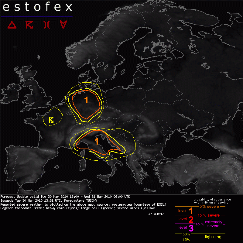 ESTOFEX Severe Weather Forecast 03/30/2010 - Update (1300 UTC)