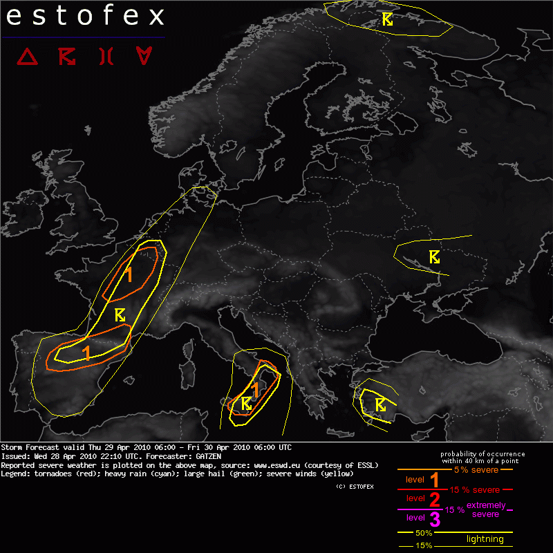 Storm Forecast Valid: Thu 14 Jul 2011 06:00 to Fri 15 Jul 2011 06:00 UTC Issued: Wed 13 Jul 2011 22:34 Forecaster: GATZEN A level 2 was issued for southern Austria, Croatia, and Slovenia mainly for large hail and excessive precipitation. A level 1 was issued for the northern Balkans, Slovakia, and southern Poland mainly for large hail. A level 1 was issued for the southern Baltic States and northern Poland mainly for tornadoes. A level 1 was issued for northern Italy mainly for large hail. A level 1 was issued for northern Algeria and Tunisia mainly for large hail and severe wind gusts. SYNOPSIS