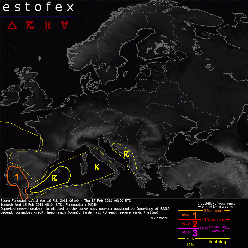 ESTOFEX Severe Weather Forecast 02/16/2011 - Update