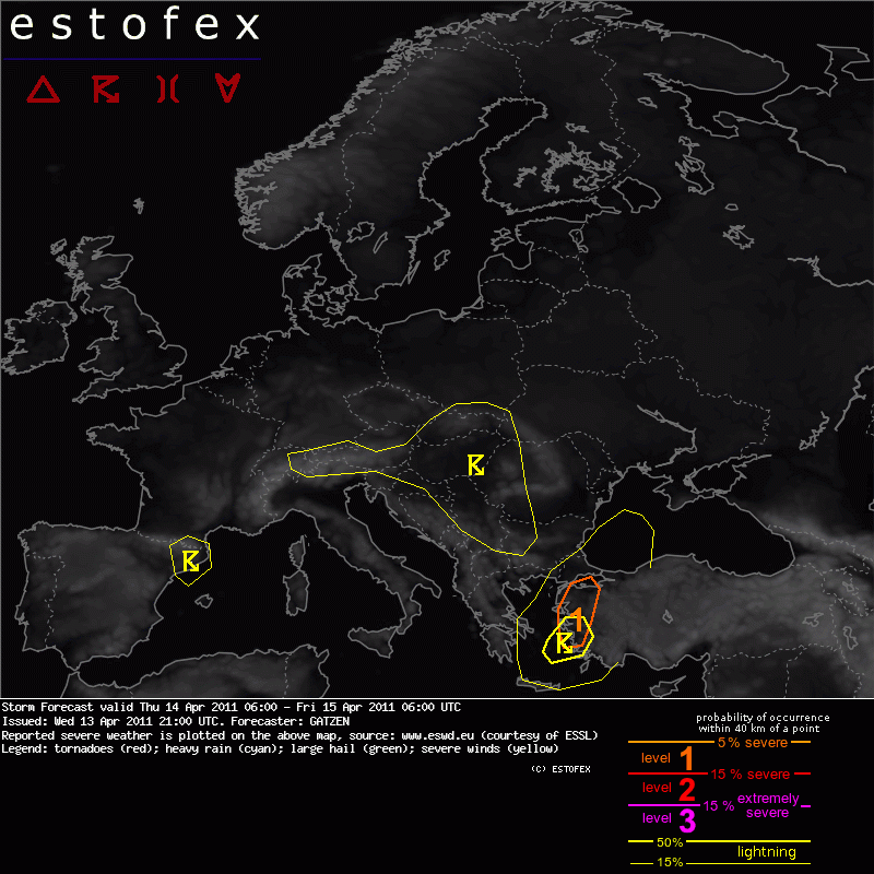 ESTOFEX Severe Weather Forecast 04/14/2011