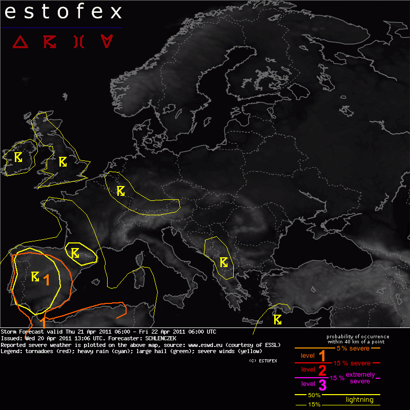ESTOFEX Severe Weather Forecast 04/21/2011