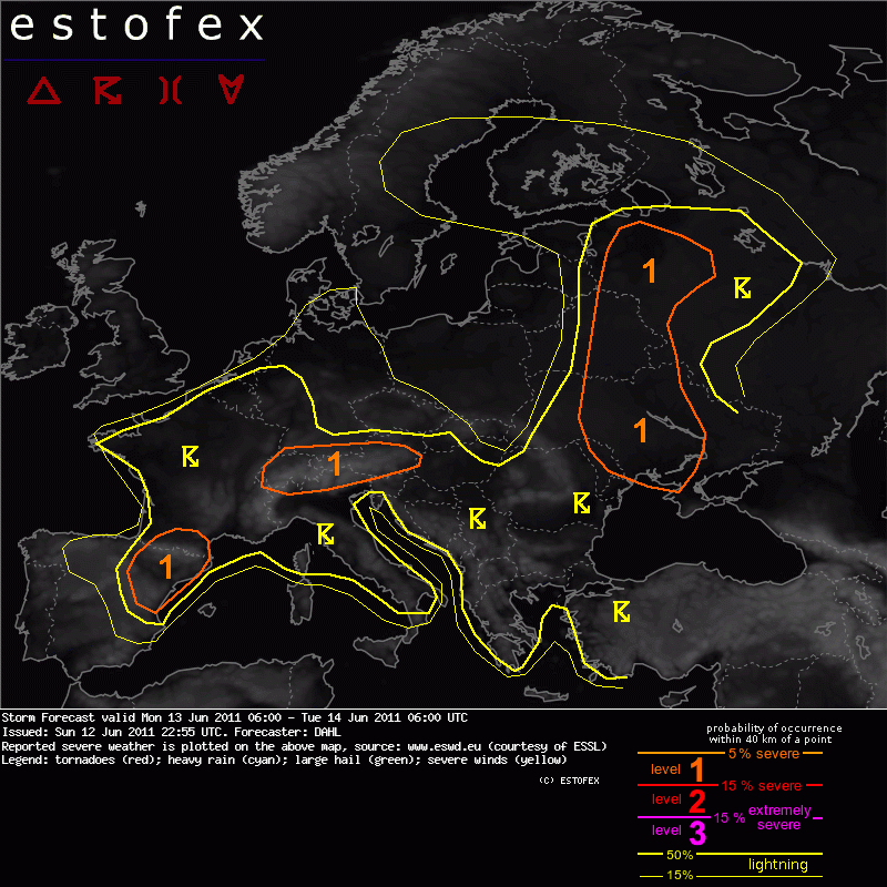 ESTOFEX Severe Weather Forecast 06/13/2011