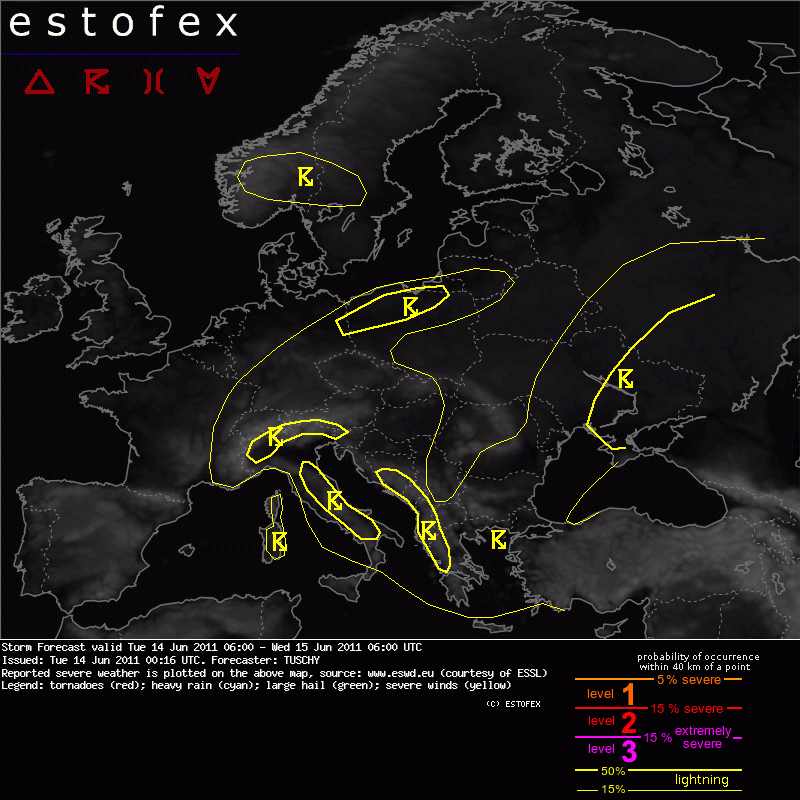 ESTOFEX Severe Weather Forecast 06/14/2011