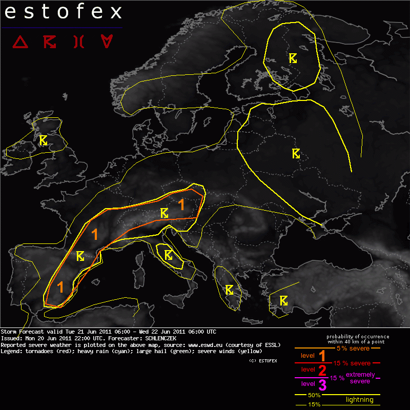 ESTOFEX Severe Weather Forecast 06/21/2011