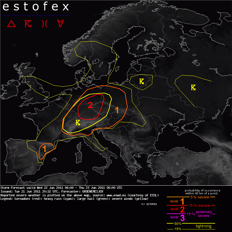 ESTOFEX Severe Weather Forecast 06/22/2011 - Update