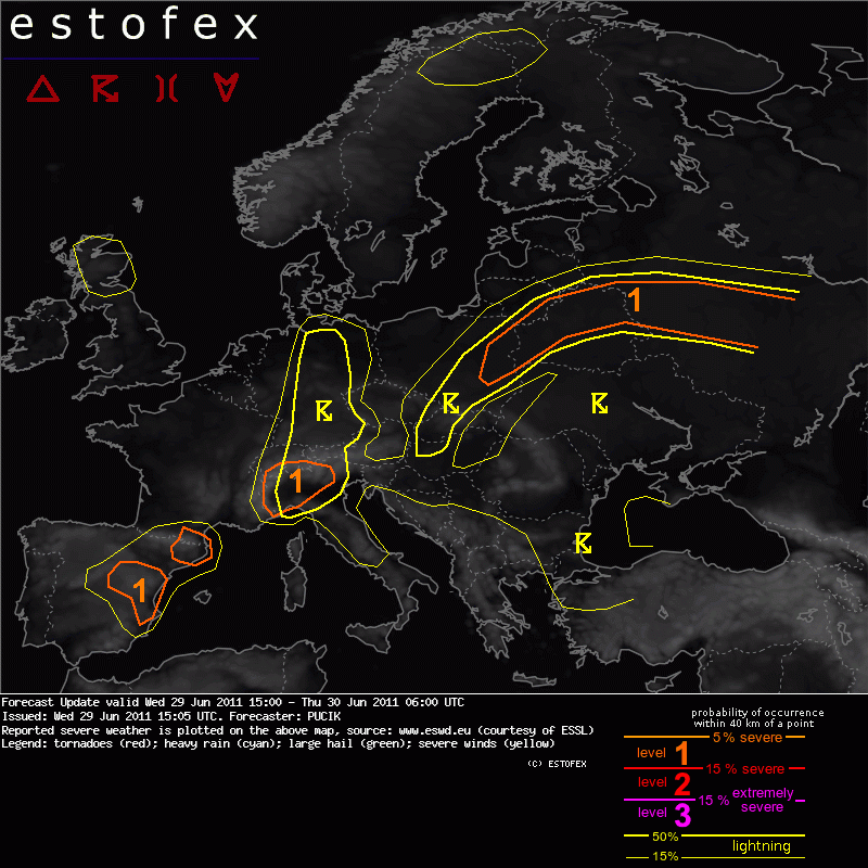 ESTOFEX Severe Weather Forecast 06/29/2011 - Update