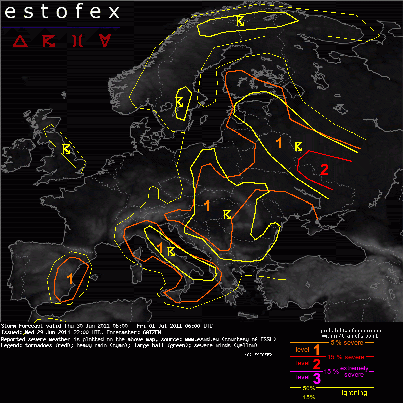 ESTOFEX Severe Weather Forecast 06/30/2011