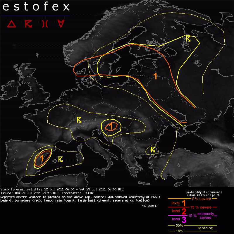 ESTOFEX Severe Weather Forecast 07/22/2011