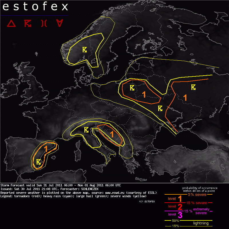 ESTOFEX Severe Weather Forecast 07/31/2011