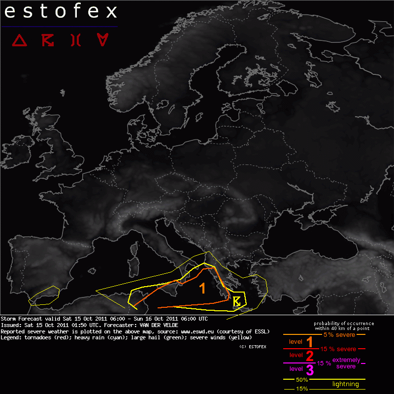 ESTOFEX Severe Weather Forecast 10/15/2011 0600UTC