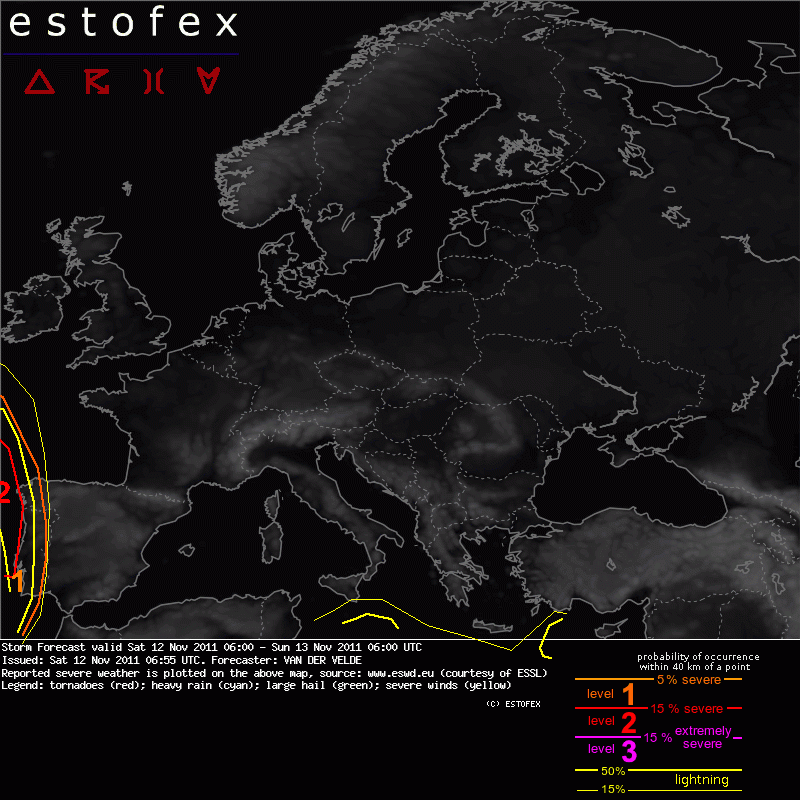 ESTOFEX Severe Weather Forecast 11/12/2011 0600UTC