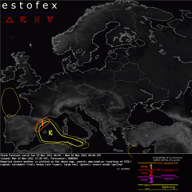 ESTOFEX Severe Weather Forecast 11/15/2011 0600UTC