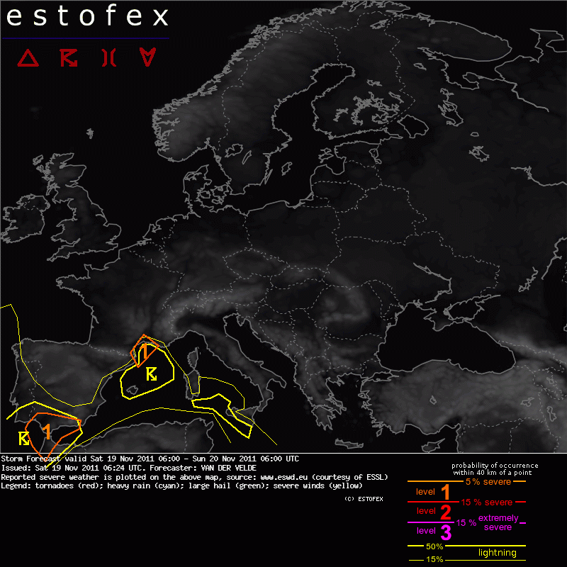 ESTOFEX Severe Weather Forecast 11/19/2011 0600UTC
