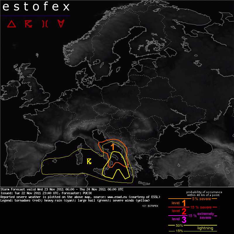 ESTOFEX Severe Weather Forecast 11/23/2011 0600UTC