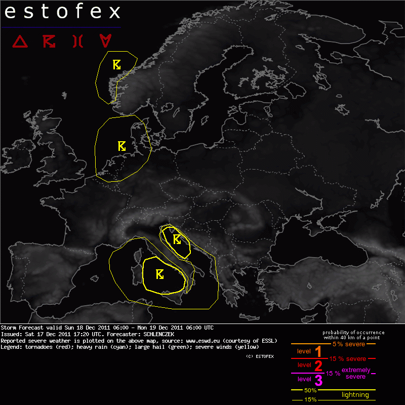 ESTOFEX Severe Weather Forecast 12/18/2011 0600UTC
