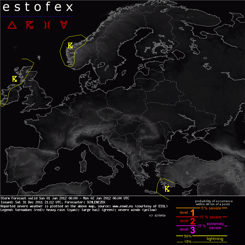 ESTOFEX Severe Weather Forecast 01/01/2012 0600UTC