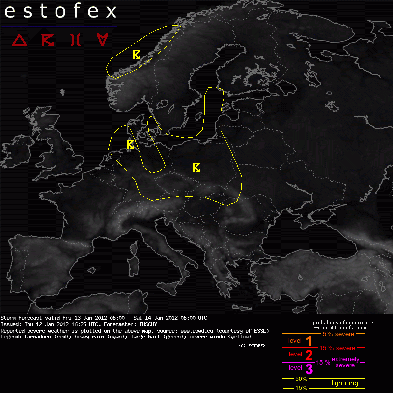 Valid: Fri 13 Jan 2012 06:00 to Sat 14 Jan 2012 06:00 UTC