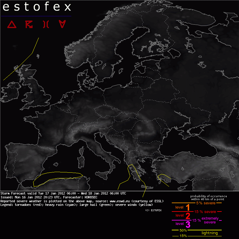 ESTOFEX Severe Weather Forecast 01/17/2012 0600UTC