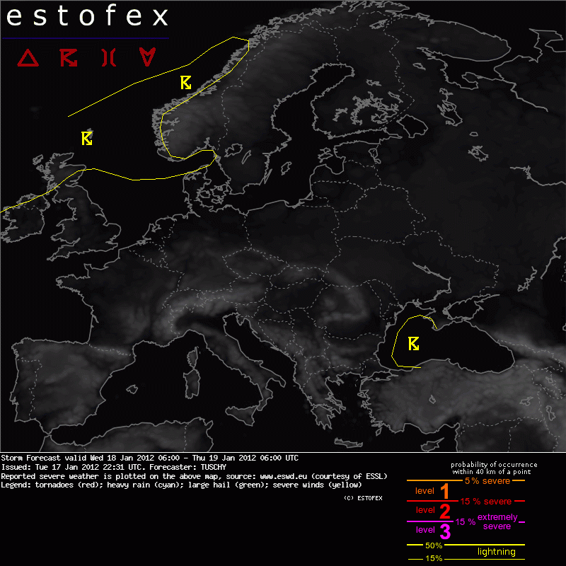 ESTOFEX Severe Weather Forecast 01/18/2012 0600UTC