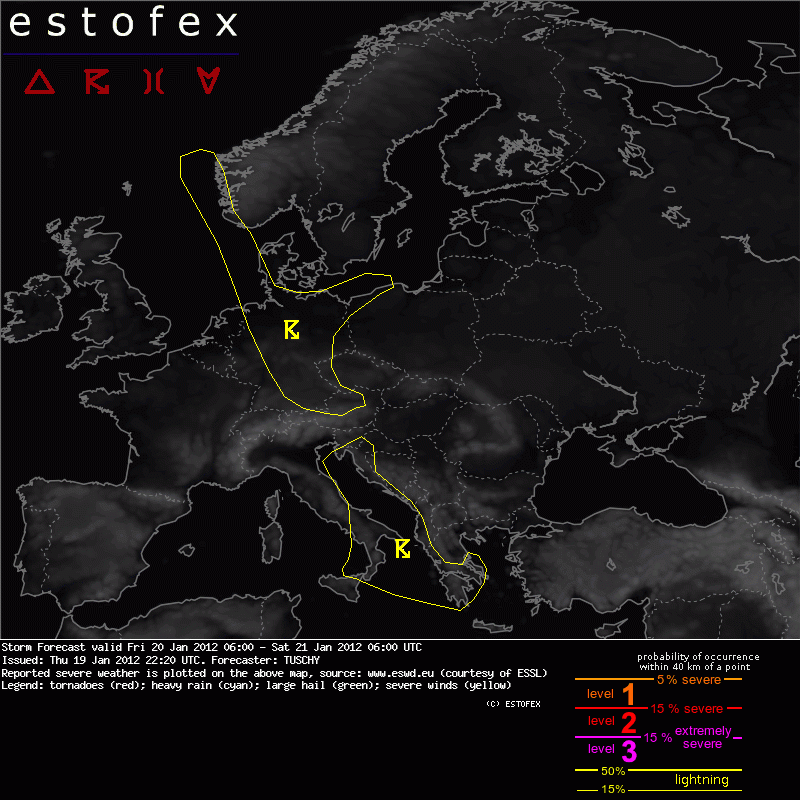 ESTOFEX Severe Weather Forecast 01/20/2012 0600UTC