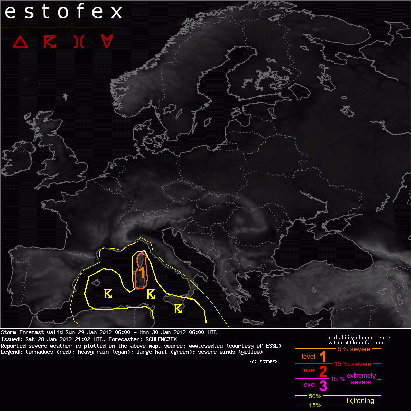 ESTOFEX Severe Weather Forecast 01/29/2012 0600UTC
