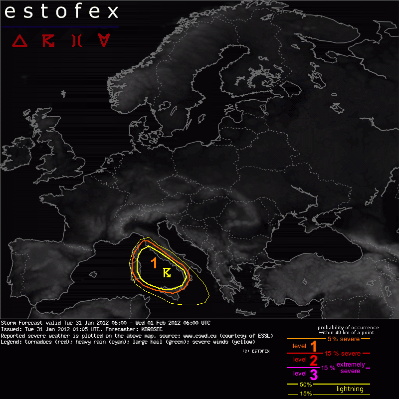 ESTOFEX Severe Weather Forecast 01/31/2012 0600UTC