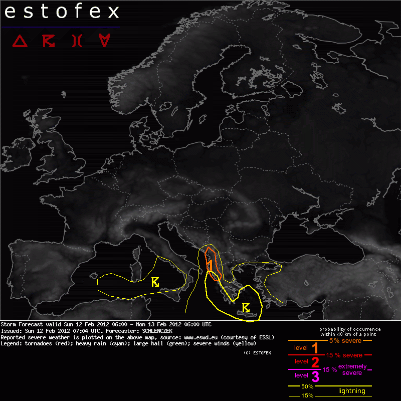 Valid: Sun 12 Feb 2012 06:00 to Mon 13 Feb 2012 06:00 UTC