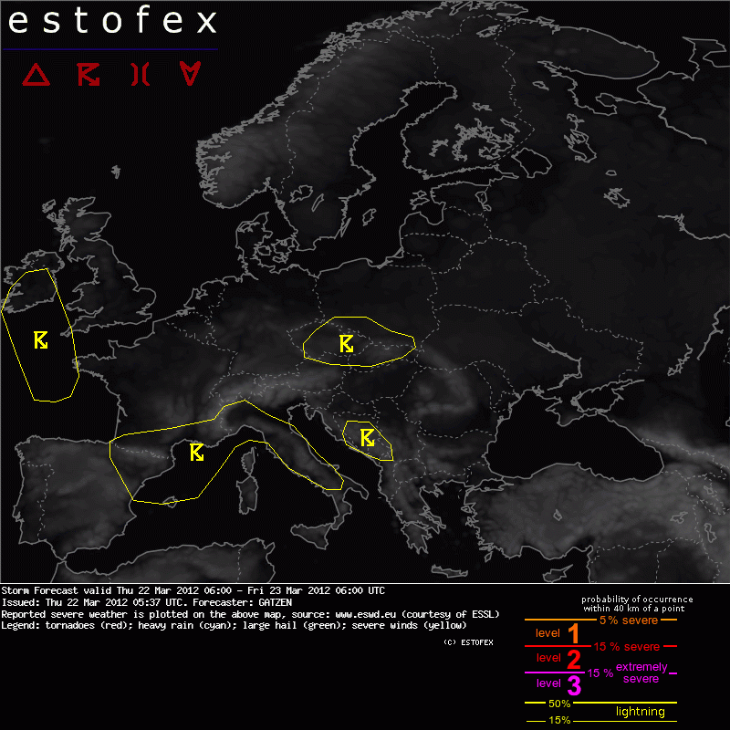 ESTOFEX Severe Weather Forecast 03/22/2012 0600UTC