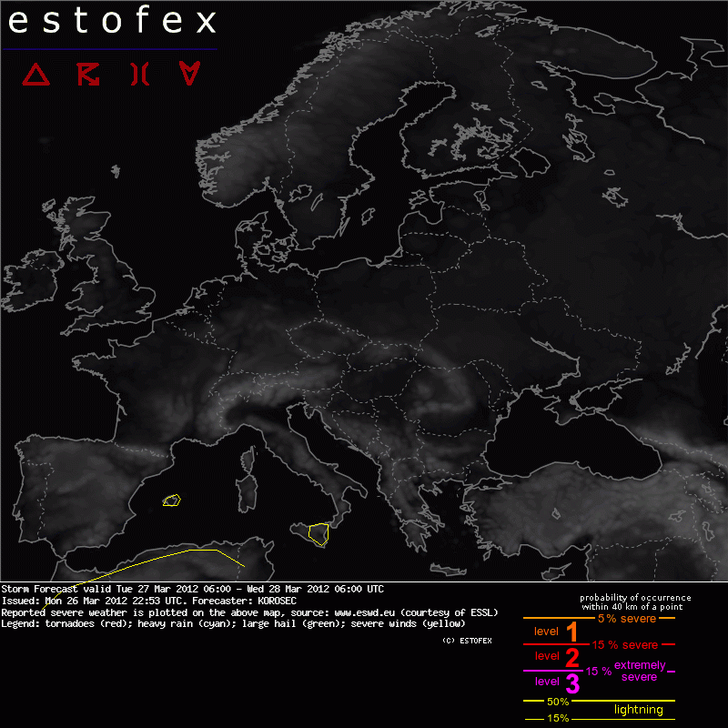 ESTOFEX Severe Weather Forecast 03/27/2012 0600UTC