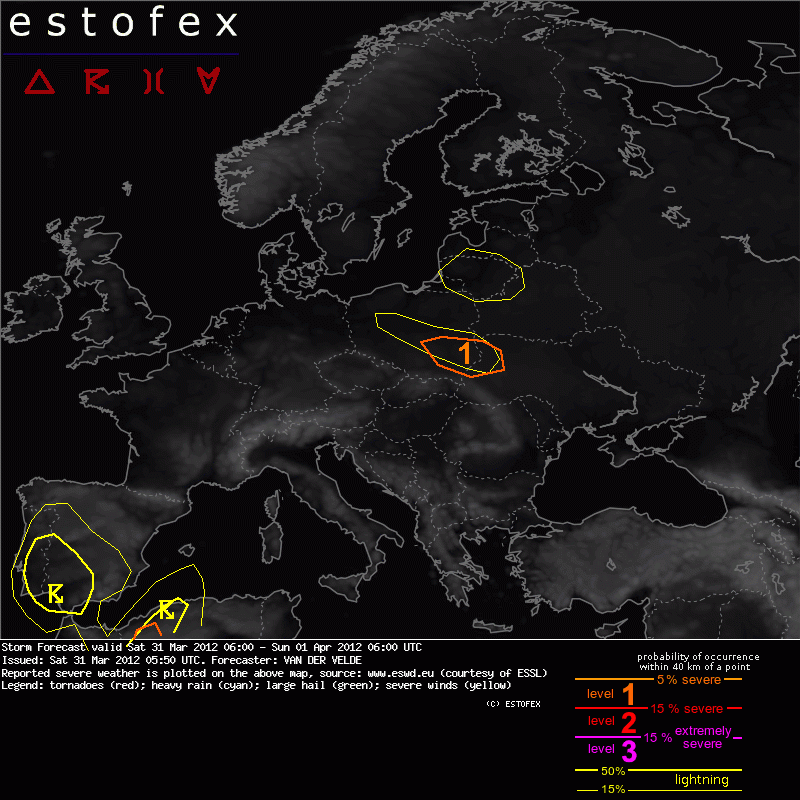 Valid: Sat 31 Mar 2012 06:00 to Sun 01 Apr 2012 06:00 UTC