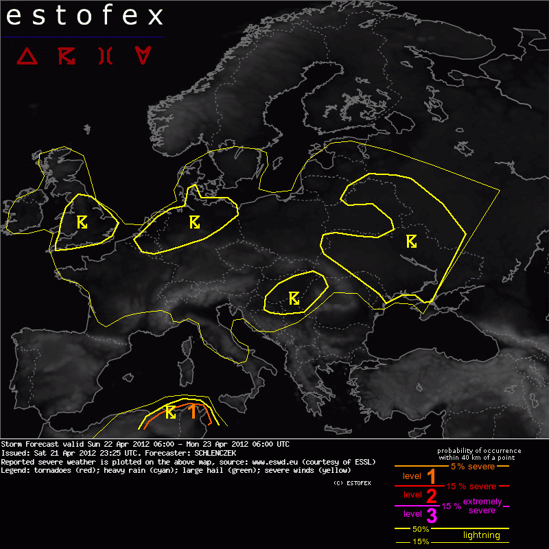 ESTOFEX Severe Weather Forecast 04/22/2012 0600UTC