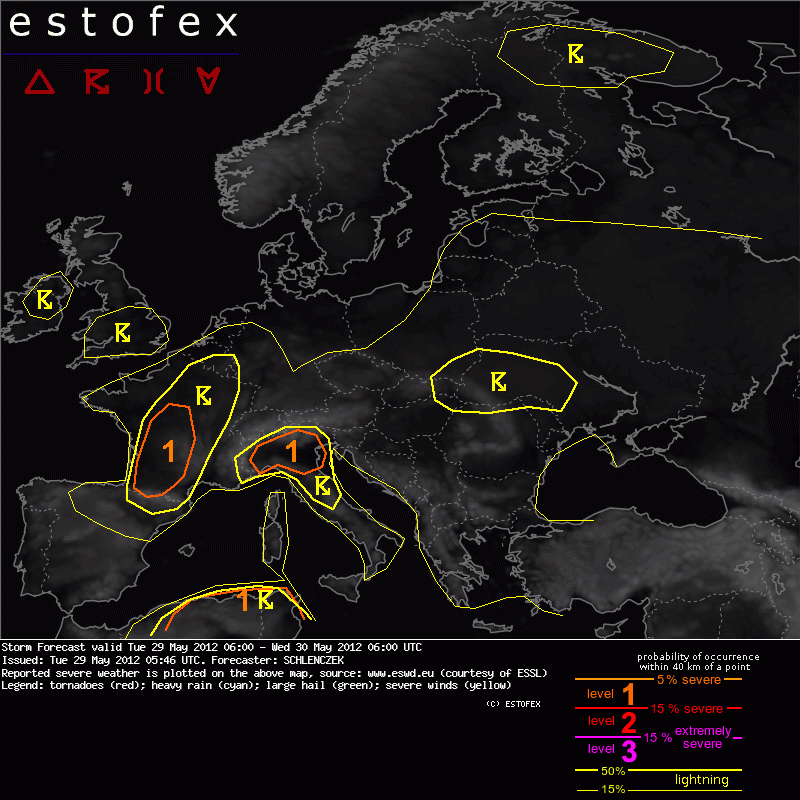 ESTOFEX Severe Weather Forecast 05/29/2012 0600UTC