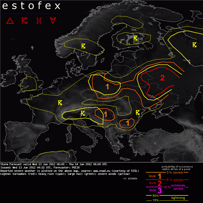 ESTOFEX Severe Weather Forecast 06/13/2012 0600UTC