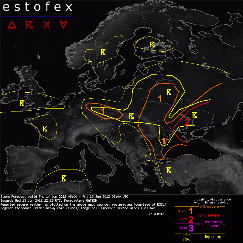 ESTOFEX Severe Weather Forecast 06/14/2012 0600UTC
