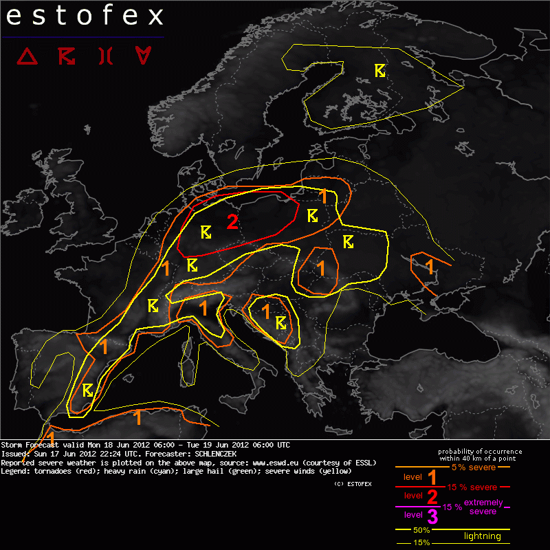 ESTOFEX Severe Weather Forecast 06/18/2012 0600UTC