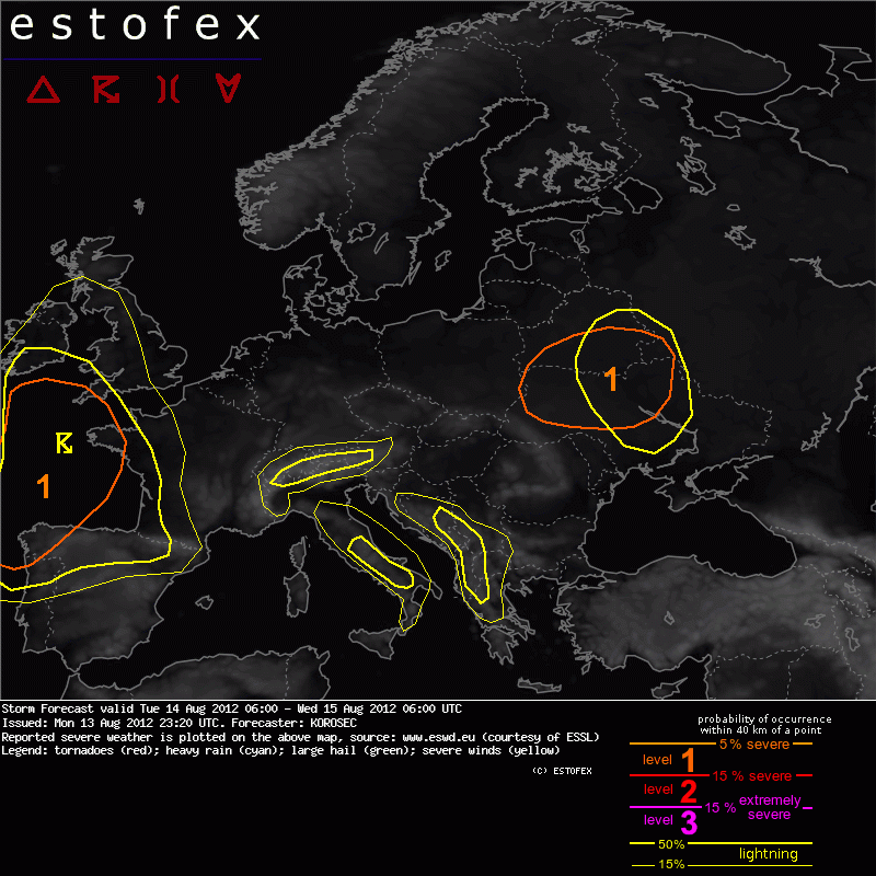 ESTOFEX Severe Weather Forecast 08/14/2012 0600UTC