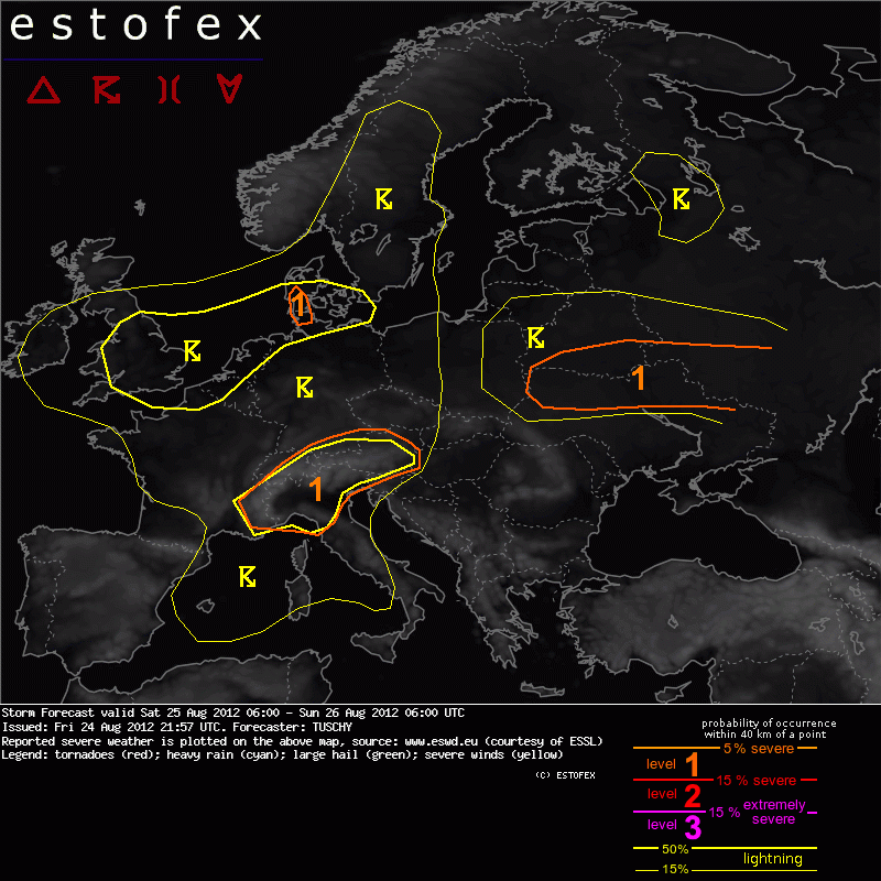 ESTOFEX Severe Weather Forecast 08/25/2012 0600UTC