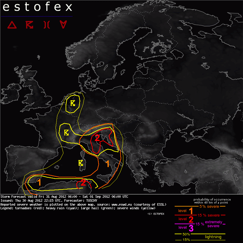 ESTOFEX Severe Weather Forecast 08/31/2012 0600UTC