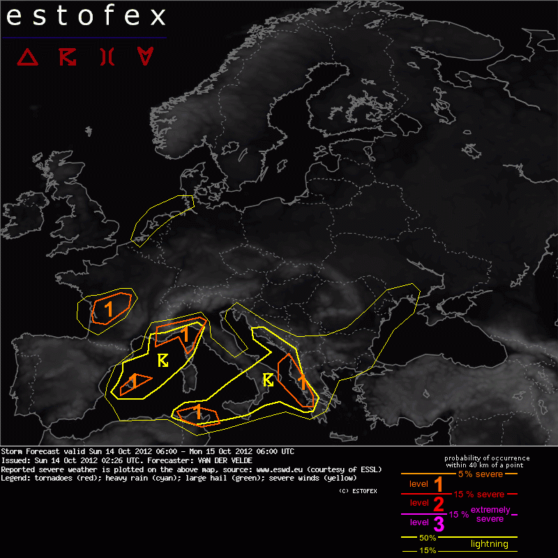 ESTOFEX Severe Weather Forecast 10/14/2012 0600UTC