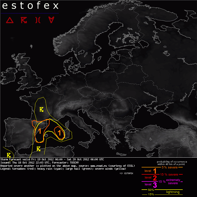 ESTOFEX Severe Weather Forecast 10/19/2012 0600UTC
