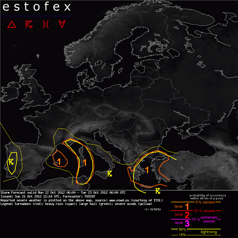 ESTOFEX Severe Weather Forecast 10/22/2012 0600UTC