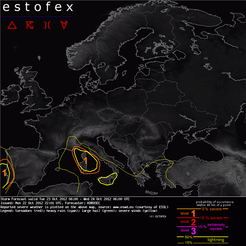 ESTOFEX Severe Weather Forecast 10/23/2012 0600UTC