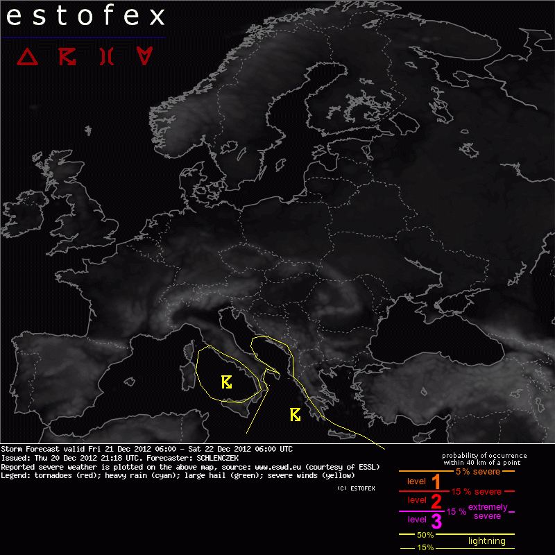 ESTOFEX Severe Weather Forecast 12/21/2012 0600UTC