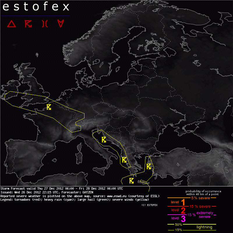 ESTOFEX Severe Weather Forecast 12/27/2012 0600UTC