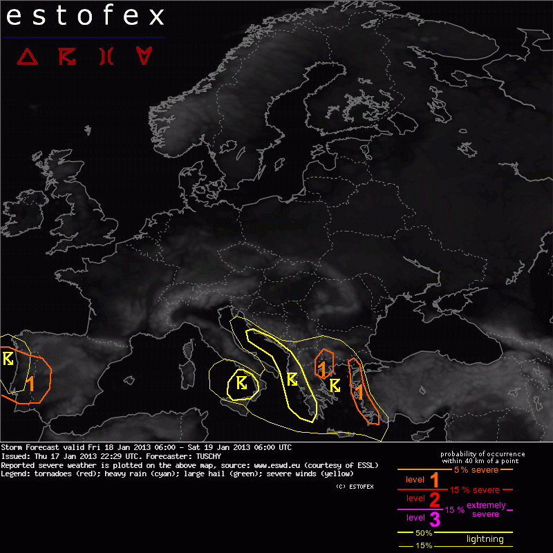 ESTOFEX Severe Weather Forecast 01/18/2013 0600UTC
