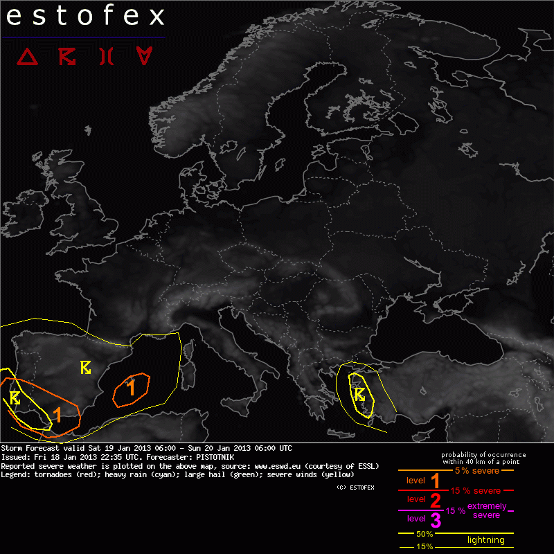 ESTOFEX Severe Weather Forecast 01/19/2013 0600UTC