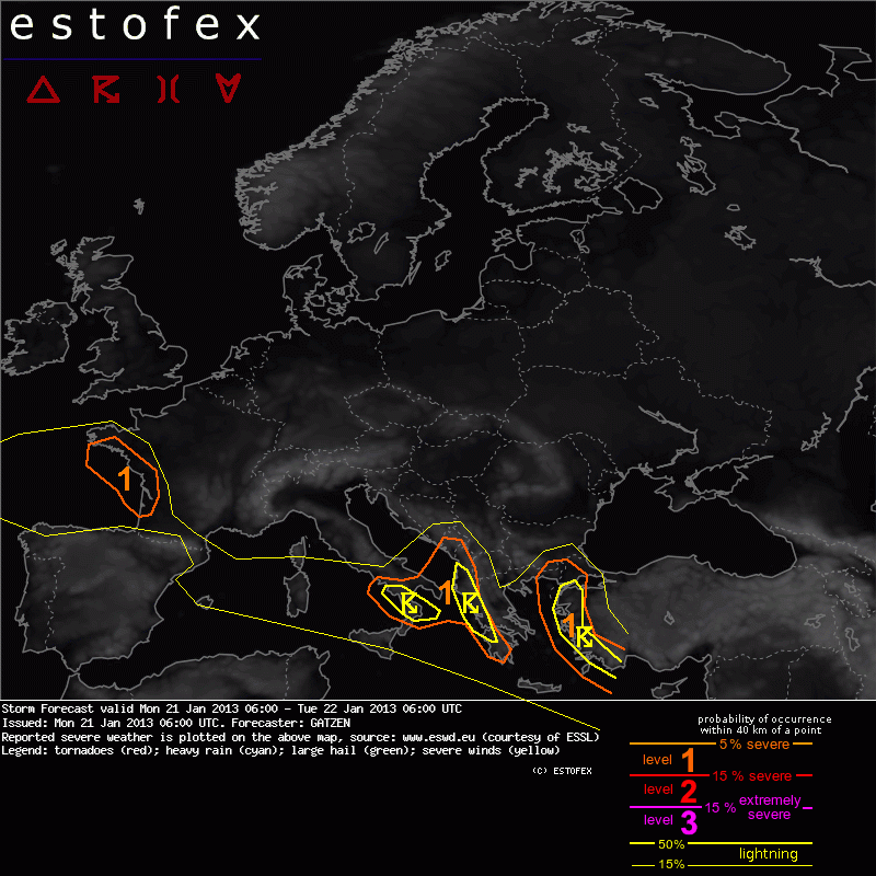 ESTOFEX Severe Weather Forecast 01/21/2013 0600UTC