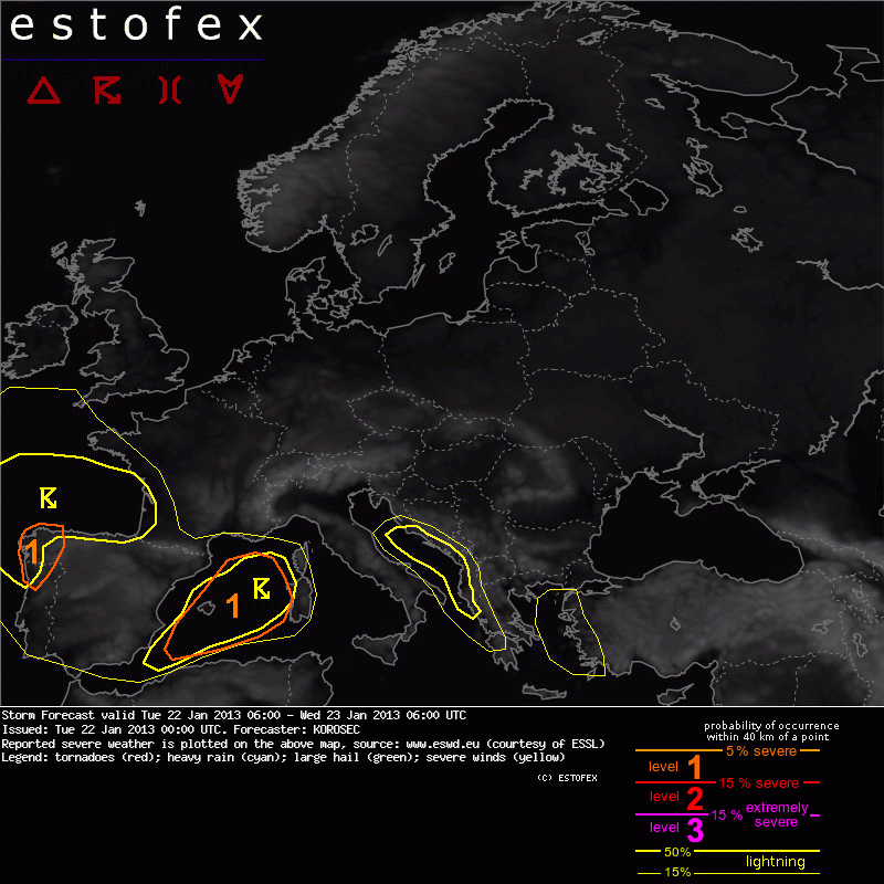 Valid: Tue 22 Jan 2013 06:00 to Wed 23 Jan 2013 06:00 UTC