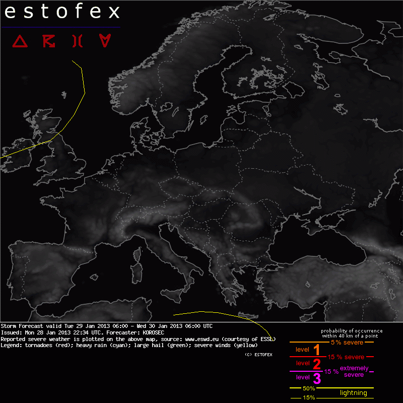 ESTOFEX Severe Weather Forecast 01/29/2013 0600UTC