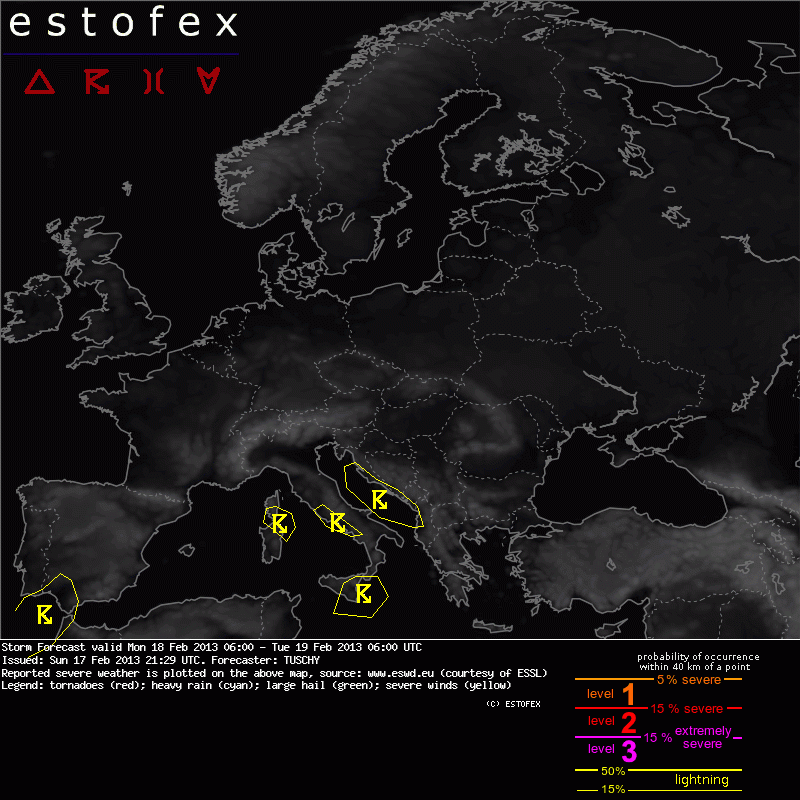 ESTOFEX Severe Weather Forecast 02/18/2013 0600UTC